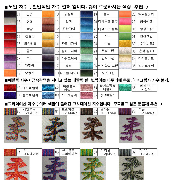 3. 자수를 하실 문자, 컬러를 선택합니다.