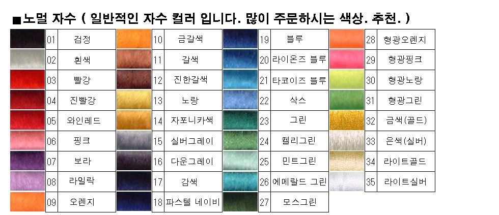 3. 자수를 하실 문자, 컬러를 선택합니다.