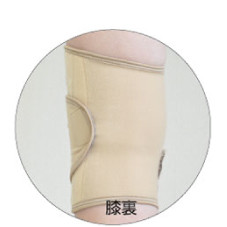 무릎 씌워 밖으로 당겨 장착하여 직물의 신축성으로 슬개골 주위를 압박합니다.